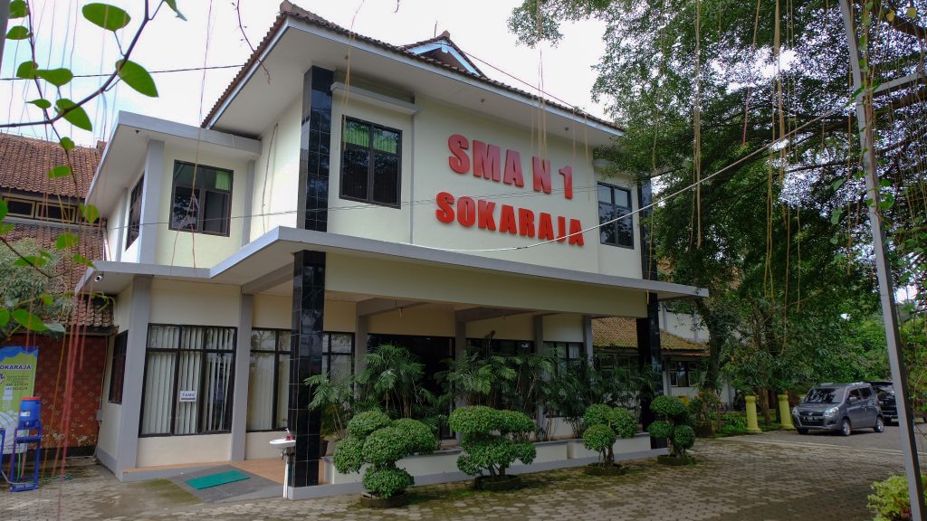 Sebelum Gedung SMA Negeri Sokaraja selesai dibangun turun Intruksi Kepala Kantor Wilayah Departemen Pendidikan dan Kebudayaan Provinsi Jawa Tengah Nomor : 674/103/T.81, tanggal 30 April 1981, yang isinya menginstruksikan kepada Kepala SMA Negeri 1 Purwokerto yang waktu itu dijabat oleh Bapak Drs. Soediro Wirohartono untuk melaksanakan pendaftaran siswa baru untuk SMA Negeri Sokaraja. Atas dasar intruksi tersebut, maka Kepala SMA Negeri 1 Purwokerto segera melaksanakan Pendaftaran Siswa Baru untuk SMA Negeri 1 Sokaraja Tahun Pelajaran 1981/1982. Pada saat itu yang diterima sebagai siswa baru di SMA Negeri Sokaraja baru tiga kelas, dan untuk sementara masuk sore hari, bertempat di SMA Negeri 1 Purwokerto. Demikian pula untuk para guru, sebagian merupakan guru-guru SMA Negeri 1 Purwokerto. Beberapa orang guru yang pada waktu itu mengajar siswa Angkatan pertama SMA Purwokerto Sokaraja yang sampai saat ini masih tetap menjadi guru SMA Negeri Sokaraja adalah : Ibu Djah Budi Arly, S.Pd., dan Ibu Farida BA. Sedangkan tenaga pelaksana dan pembantu pelaksana yang sampai say ini masih bertugas di SMA Negeri Sokaraja adalah Sudimah dan Bapak Sodik. Pada awal tahun pelajaran 1981/1982, tepatnya tanggal 14 Juli 1981, Menteri Pendidikan dan Kebudayaan RI mengeluarkan Suarat Keputusan Nomor : 0219/O/1981 tentang Pendirian 270 SMP dan SMA Negeri se-Indonesia, terhitung mulai tanggal 1 Juli 1981, satu diantara 270 sekolah yang resmi didirikan oleh pemerintah adalah adalah SMA Negeri Sokaraja. Dengan demikian secara yuridis formal sebenarnya SMA Negeri Sokaraja berdiri pada tanggal 1 Juli 1981. Sebagai Kepala Sekolah definitif yang pertama adalah Bapak Basoeki Dwijormartojo, yang semula merupakan guru SMA Negeri 1 Sokaraja.