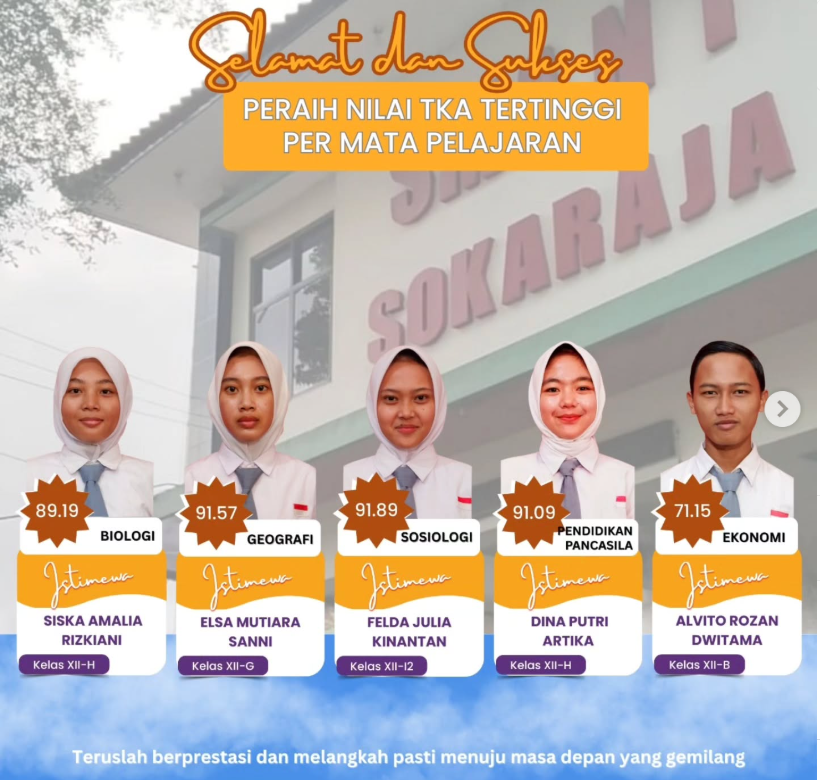 Peraih Nilai TKA Tertinggi SMA Negeri 1 Sokaraja