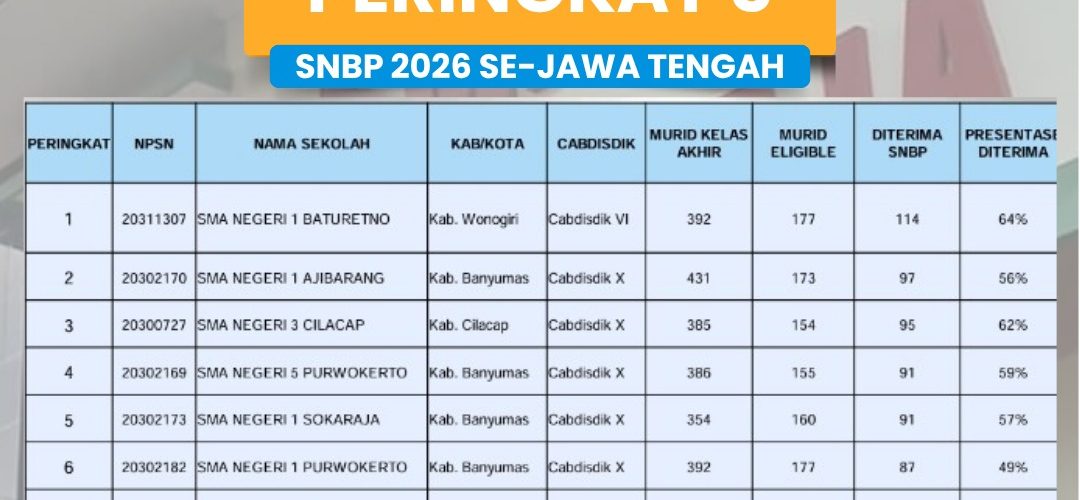 Patut disyukuri SMA Negeri 1 Sokaraja meraih peringkat 5 SNBP 2026 Se- Jawa Tengah. Keberhasilan ini adalah hasil dari doa yang panjang dan kerja keras. Semoga ini membawa berkah bagi sekolah dan pendidikan Indonesia.